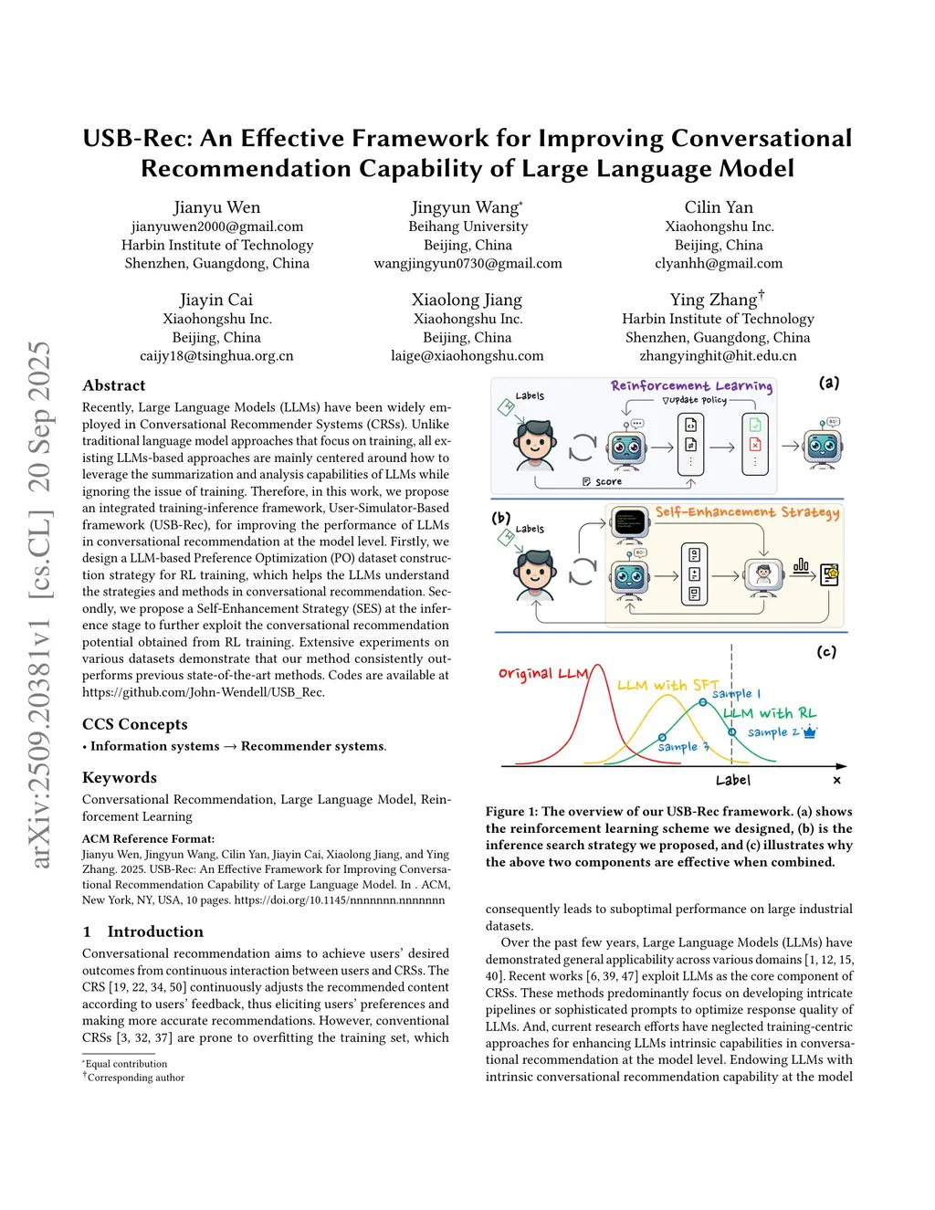 USB-Rec: An Effective Framework for Improving Conversational Recommendation Capability of Large Language Model