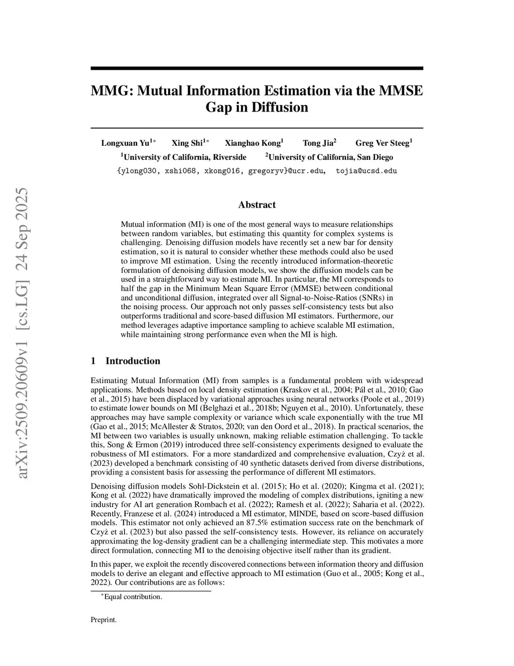 MMG: Mutual Information Estimation via the MMSE Gap in Diffusion