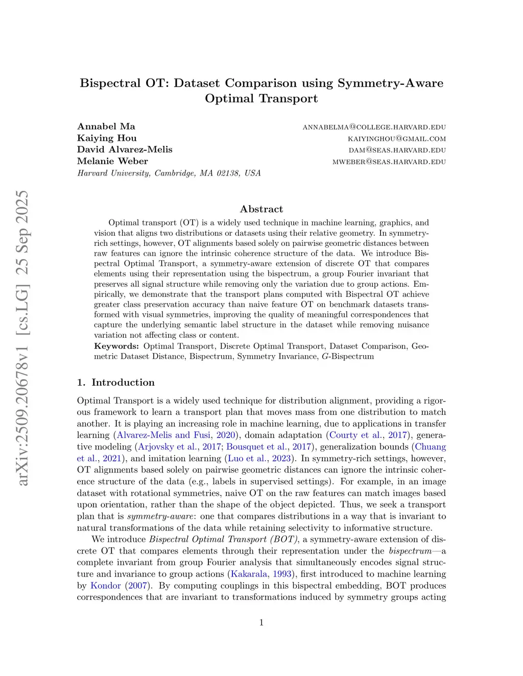 Bispectral OT: Dataset Comparison using Symmetry-Aware Optimal Transport