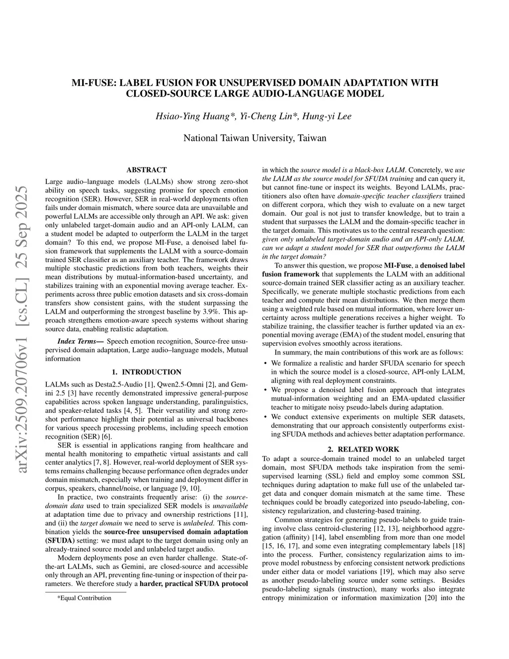 MI-Fuse: Label Fusion for Unsupervised Domain Adaptation with Closed-Source Large-Audio Language Model