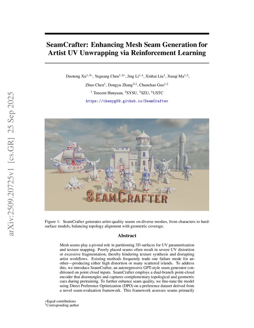Mesh seams play a pivotal role in partitioning 3D surfaces for UV parametrization and texture mapping. Poorly placed seams often result in severe UV distortion or excessive fragmentation, thereby hindering texture synthesis and disrupting artist workflows. Existing methods frequently trade one failure mode for another-producing either high distortion or many scattered islands. To address this, we introduce SeamCrafter, an autoregressive GPT-style seam generator conditioned on point cloud inputs. SeamCrafter employs a dual-branch point-cloud encoder that disentangles and captures complementary topological and geometric cues during pretraining. To further enhance seam quality, we fine-tune the model using Direct Preference Optimization (DPO) on a preference dataset derived from a novel seam-evaluation framework. This framework assesses seams primarily by UV distortion and fragmentation, and provides pairwise preference labels to guide optimization. Extensive experiments demonstrate that SeamCrafter produces seams with substantially lower distortion and fragmentation than prior approaches, while preserving topological consistency and visual fidelity.