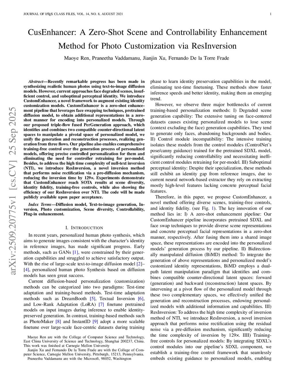 CusEnhancer: A Zero-Shot Scene and Controllability Enhancement Method for Photo Customization via ResInversion