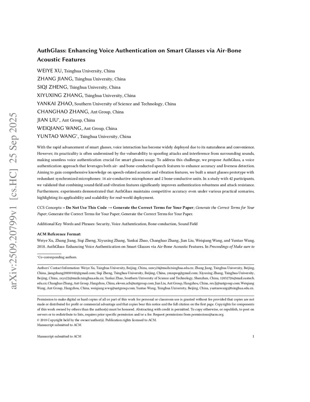 AuthGlass: Enhancing Voice Authentication on Smart Glasses via Air-Bone Acoustic Features