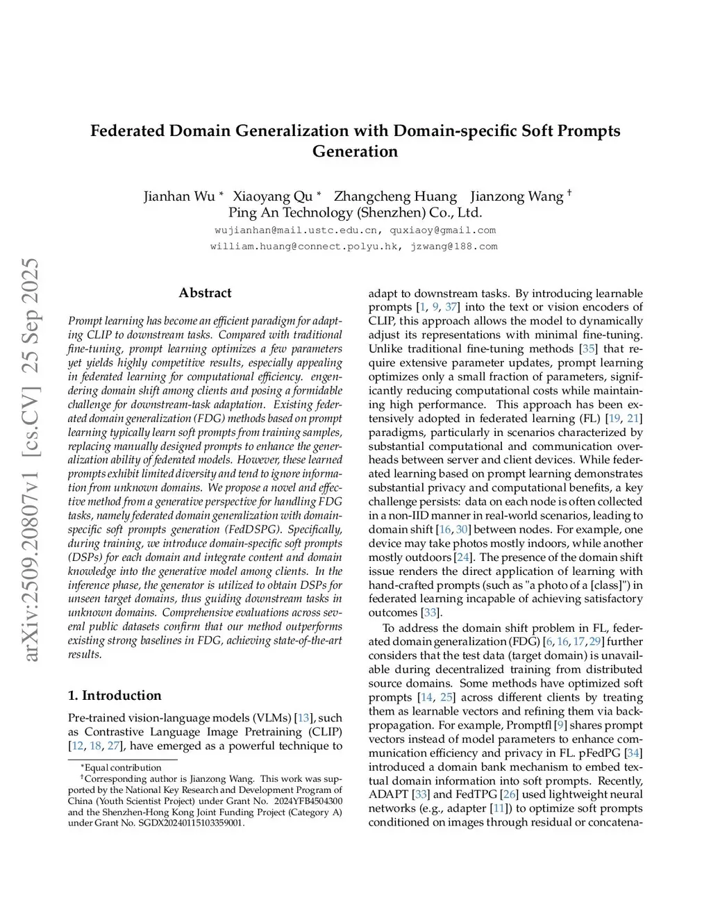 Federated Domain Generalization with Domain-specific Soft Prompts Generation