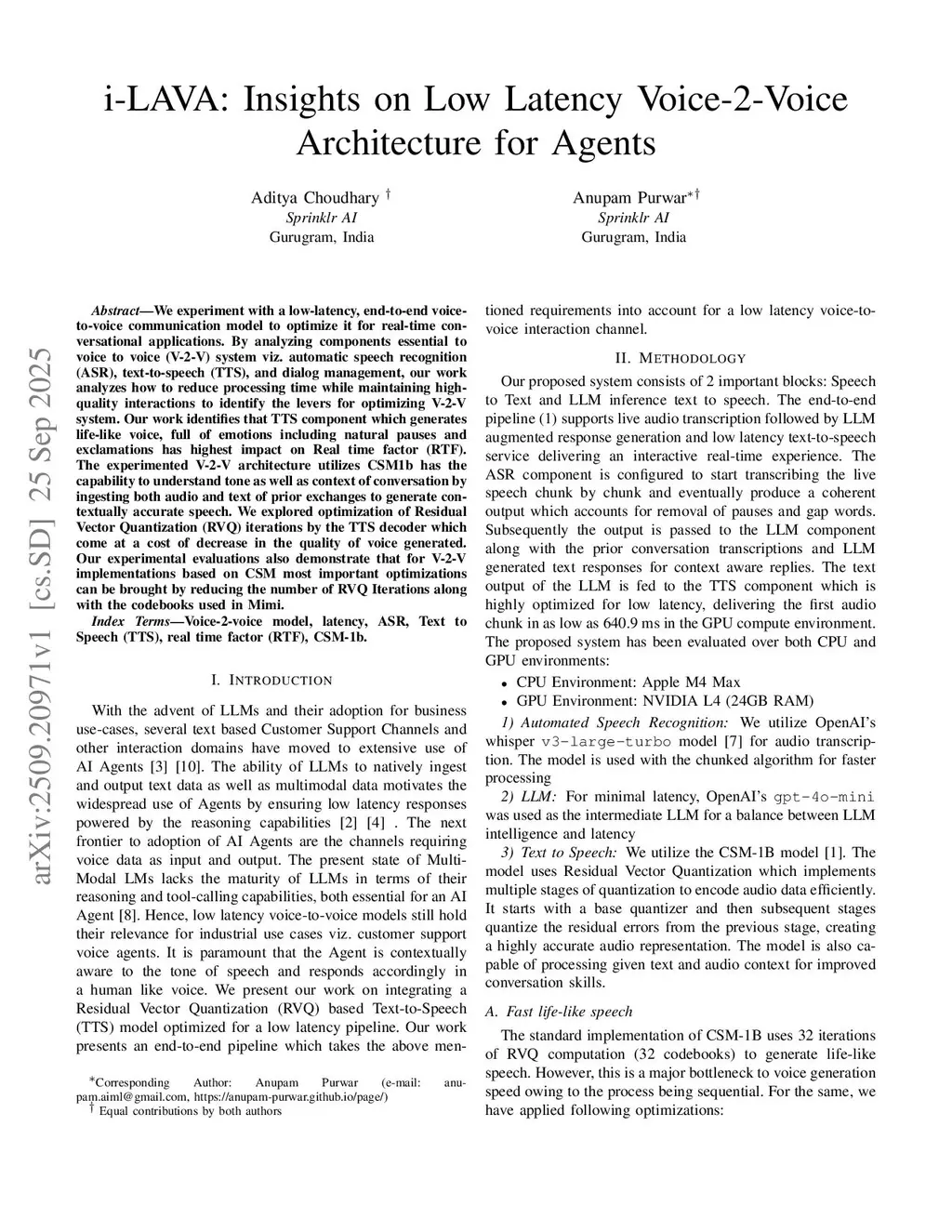 i-LAVA: Insights on Low Latency Voice-2-Voice Architecture for Agents