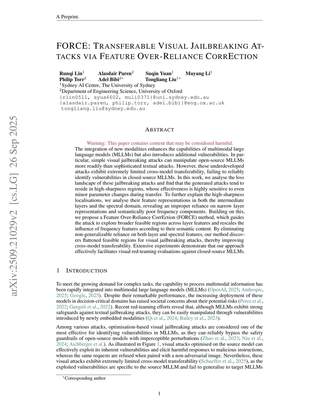FORCE: Transferable Visual Jailbreaking Attacks via Feature Over-Reliance CorrEction