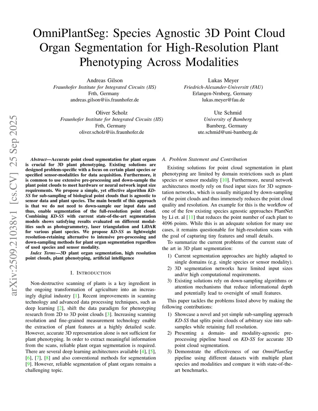 Accurate point cloud segmentation for plant organs is crucial for 3D plant phenotyping. Existing solutions are designed problem-specific with a focus on certain plant species or specified sensor-modalities for data acquisition. Furthermore, it is common to use extensive pre-processing and down-sample the plant point clouds to meet hardware or neural network input size requirements. We propose a simple, yet effective algorithm KDSS for sub-sampling of biological point clouds that is agnostic to sensor data and plant species. The main benefit of this approach is that we do not need to down-sample our input data and thus, enable segmentation of the full-resolution point cloud. Combining KD-SS with current state-of-the-art segmentation models shows satisfying results evaluated on different modalities such as photogrammetry, laser triangulation and LiDAR for various plant species. We propose KD-SS as lightweight resolution-retaining alternative to intensive pre-processing and down-sampling methods for plant organ segmentation regardless of used species and sensor modality.