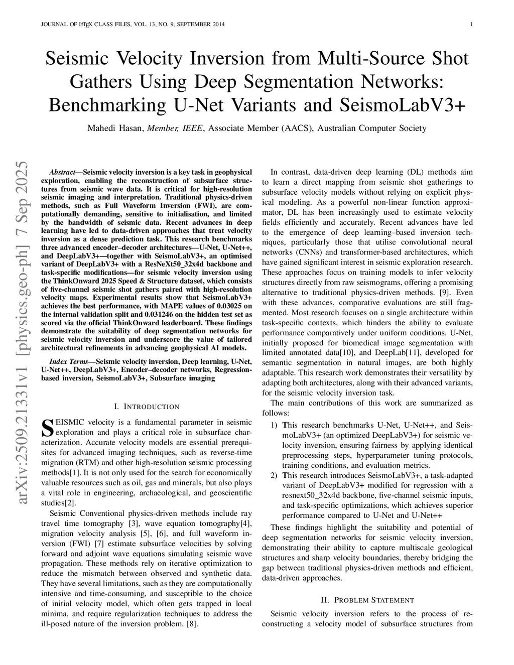 Seismic Velocity Inversion from Multi-Source Shot Gathers Using Deep Segmentation Networks: Benchmarking U-Net Variants and SeismoLabV3+