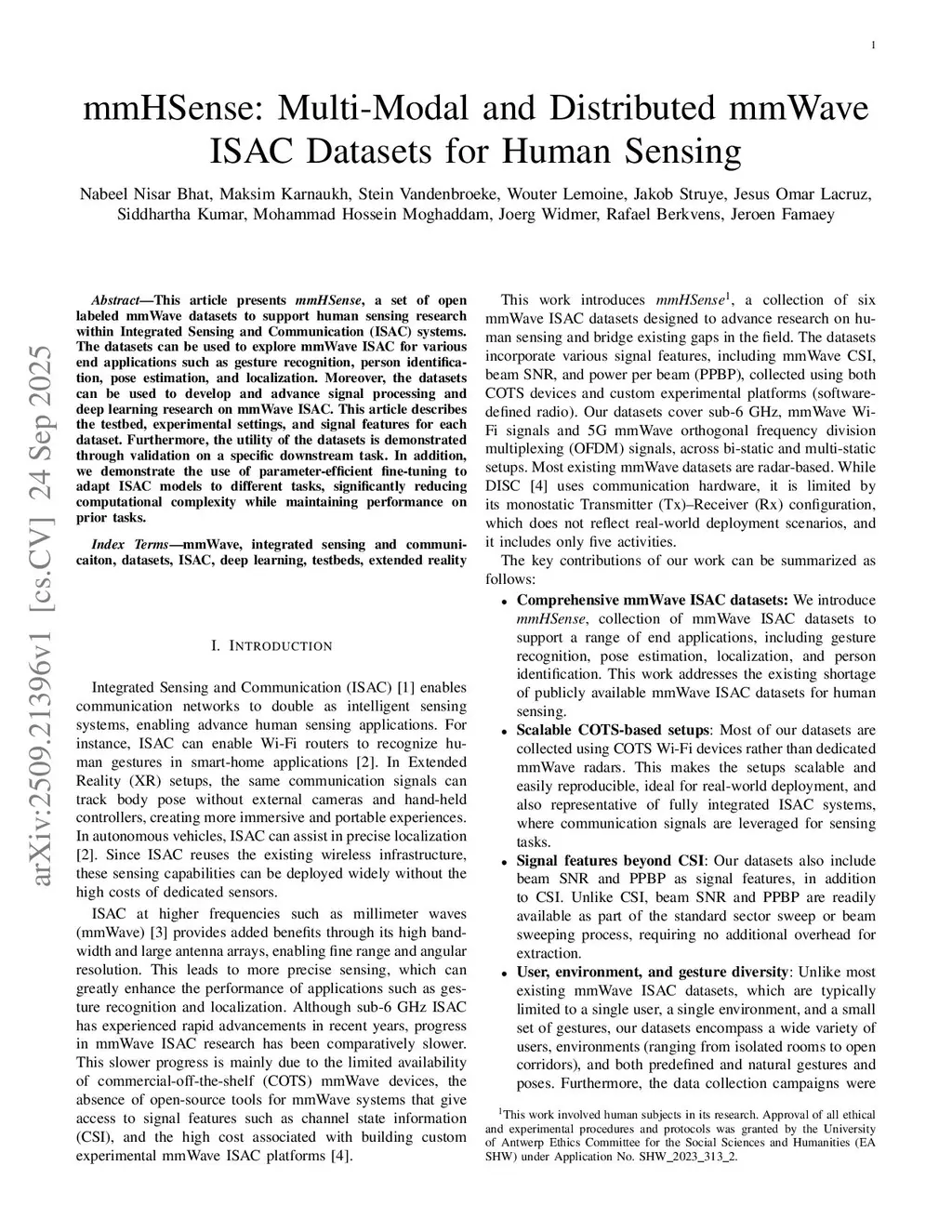 This article presents mmHSense, a set of open labeled mmWave datasets to support human sensing research within Integrated Sensing and Communication (ISAC) systems. The datasets can be used to explore mmWave ISAC for various end applications such as gesture recognition, person identification, pose estimation, and localization. Moreover, the datasets can be used to develop and advance signal processing and deep learning research on mmWave ISAC. This article describes the testbed, experimental settings, and signal features for each dataset. Furthermore, the utility of the datasets is demonstrated through validation on a specific downstream task. In addition, we demonstrate the use of parameter-efficient fine-tuning to adapt ISAC models to different tasks, significantly reducing computational complexity while maintaining performance on prior tasks.