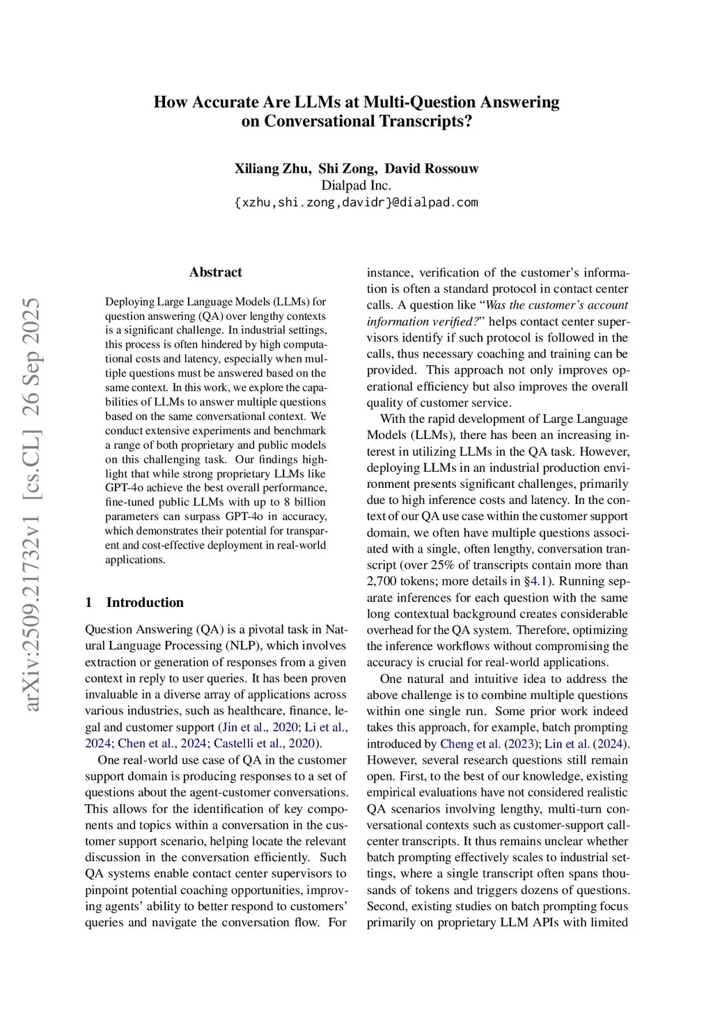 Deploying Large Language Models (LLMs) for question answering (QA) over lengthy contexts is a significant challenge. In industrial settings, this process is often hindered by high computational costs and latency, especially when multiple questions must be answered based on the same context. In this work, we explore the capabilities of LLMs to answer multiple questions based on the same conversational context. We conduct extensive experiments and benchmark a range of both proprietary and public models on this challenging task. Our findings highlight that while strong proprietary LLMs like GPT-4o achieve the best overall performance, fine-tuned public LLMs with up to 8 billion parameters can surpass GPT-4o in accuracy, which demonstrates their potential for transparent and cost-effective deployment in real-world applications.
