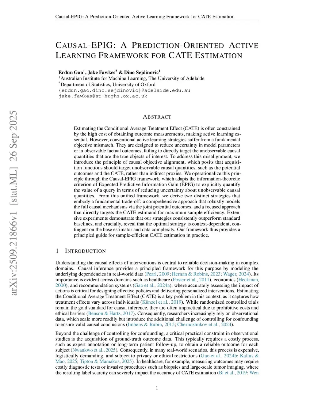 Estimating the Conditional Average Treatment Effect (CATE) is often constrained by the high cost of obtaining outcome measurements, making active learning essential. However, conventional active learning strategies suffer from a fundamental objective mismatch. They are designed to reduce uncertainty in model parameters or in observable factual outcomes, failing to directly target the unobservable causal quantities that are the true objects of interest. To address this misalignment, we introduce the principle of causal objective alignment, which posits that acquisition functions should target unobservable causal quantities, such as the potential outcomes and the CATE, rather than indirect proxies. We operationalize this principle through the Causal-EPIG framework, which adapts the information-theoretic criterion of Expected Predictive Information Gain (EPIG) to explicitly quantify the value of a query in terms of reducing uncertainty about unobservable causal quantities. From this unified framework, we derive two distinct strategies that embody a fundamental trade-off: a comprehensive approach that robustly models the full causal mechanisms via the joint potential outcomes, and a focused approach that directly targets the CATE estimand for maximum sample efficiency. Extensive experiments demonstrate that our strategies consistently outperform standard baselines, and crucially, reveal that the optimal strategy is context-dependent, contingent on the base estimator and data complexity. Our framework thus provides a principled guide for sample-efficient CATE estimation in practice.
