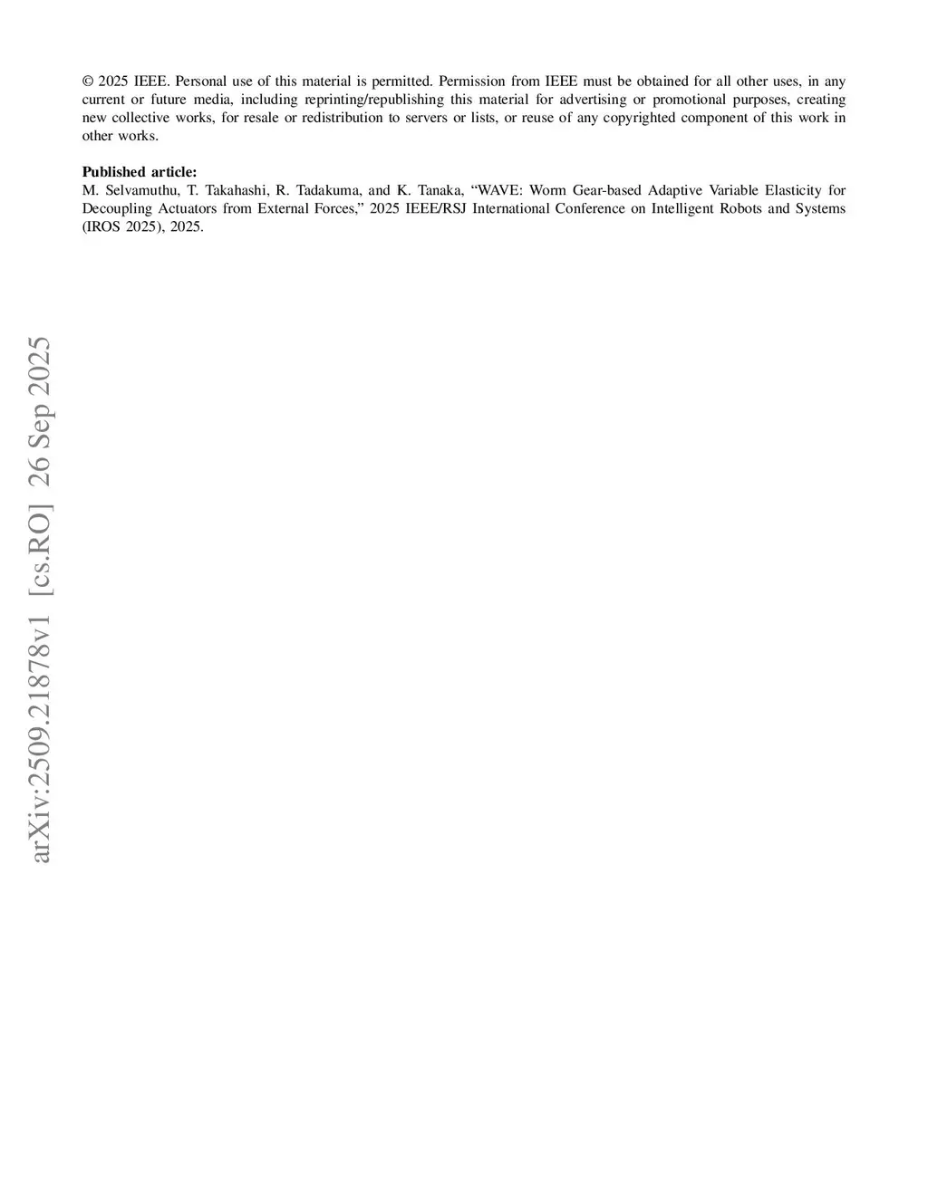 WAVE: Worm Gear-based Adaptive Variable Elasticity for Decoupling Actuators from External Forces