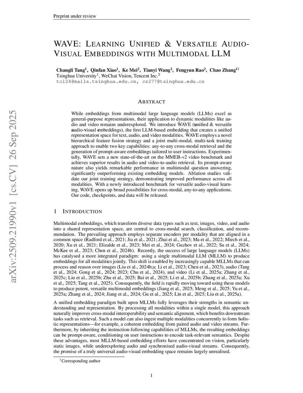 WAVE: Learning Unified & Versatile Audio-Visual Embeddings with Multimodal LLM