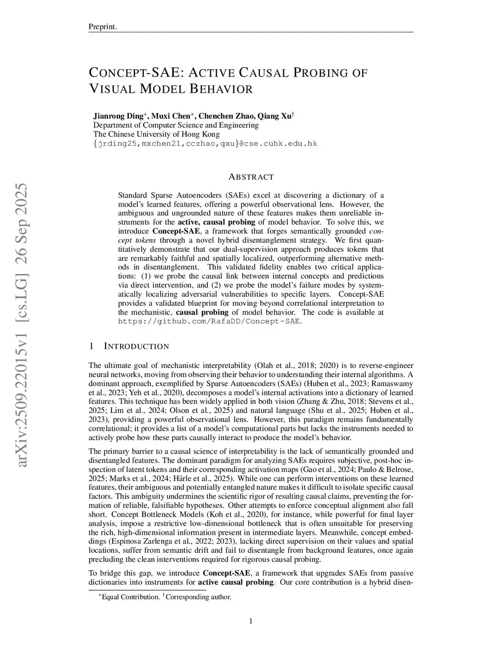 Standard Sparse Autoencoders (SAEs) excel at discovering a dictionary of a model's learned features, offering a powerful observational lens. However, the ambiguous and ungrounded nature of these features makes them unreliable instruments for the active, causal probing of model behavior. To solve this, we introduce Concept-SAE, a framework that forges semantically grounded concept tokens through a novel hybrid disentanglement strategy. We first quantitatively demonstrate that our dual-supervision approach produces tokens that are remarkably faithful and spatially localized, outperforming alternative methods in disentanglement. This validated fidelity enables two critical applications: (1) we probe the causal link between internal concepts and predictions via direct intervention, and (2) we probe the model's failure modes by systematically localizing adversarial vulnerabilities to specific layers. Concept-SAE provides a validated blueprint for moving beyond correlational interpretation to the mechanistic, causal probing of model behavior.