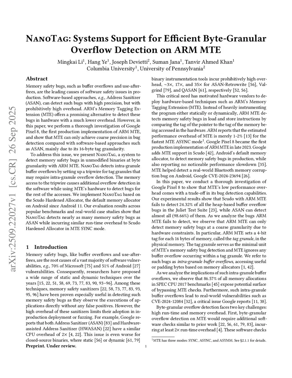 NanoTag: Systems Support for Efficient Byte-Granular Overflow Detection on ARM MTE