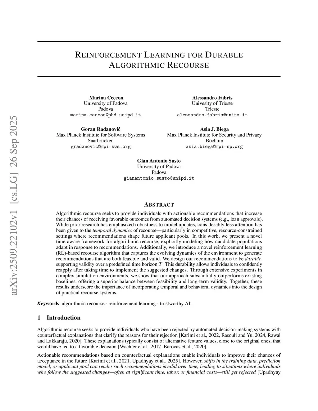 Algorithmic recourse seeks to provide individuals with actionable recommendations that increase their chances of receiving favorable outcomes from automated decision systems (e.g., loan approvals). While prior research has emphasized robustness to model updates, considerably less attention has been given to the temporal dynamics of recourse--particularly in competitive, resource-constrained settings where recommendations shape future applicant pools. In this work, we present a novel time-aware framework for algorithmic recourse, explicitly modeling how candidate populations adapt in response to recommendations. Additionally, we introduce a novel reinforcement learning (RL)-based recourse algorithm that captures the evolving dynamics of the environment to generate recommendations that are both feasible and valid. We design our recommendations to be durable, supporting validity over a predefined time horizon T. This durability allows individuals to confidently reapply after taking time to implement the suggested changes. Through extensive experiments in complex simulation environments, we show that our approach substantially outperforms existing baselines, offering a superior balance between feasibility and long-term validity. Together, these results underscore the importance of incorporating temporal and behavioral dynamics into the design of practical recourse systems.