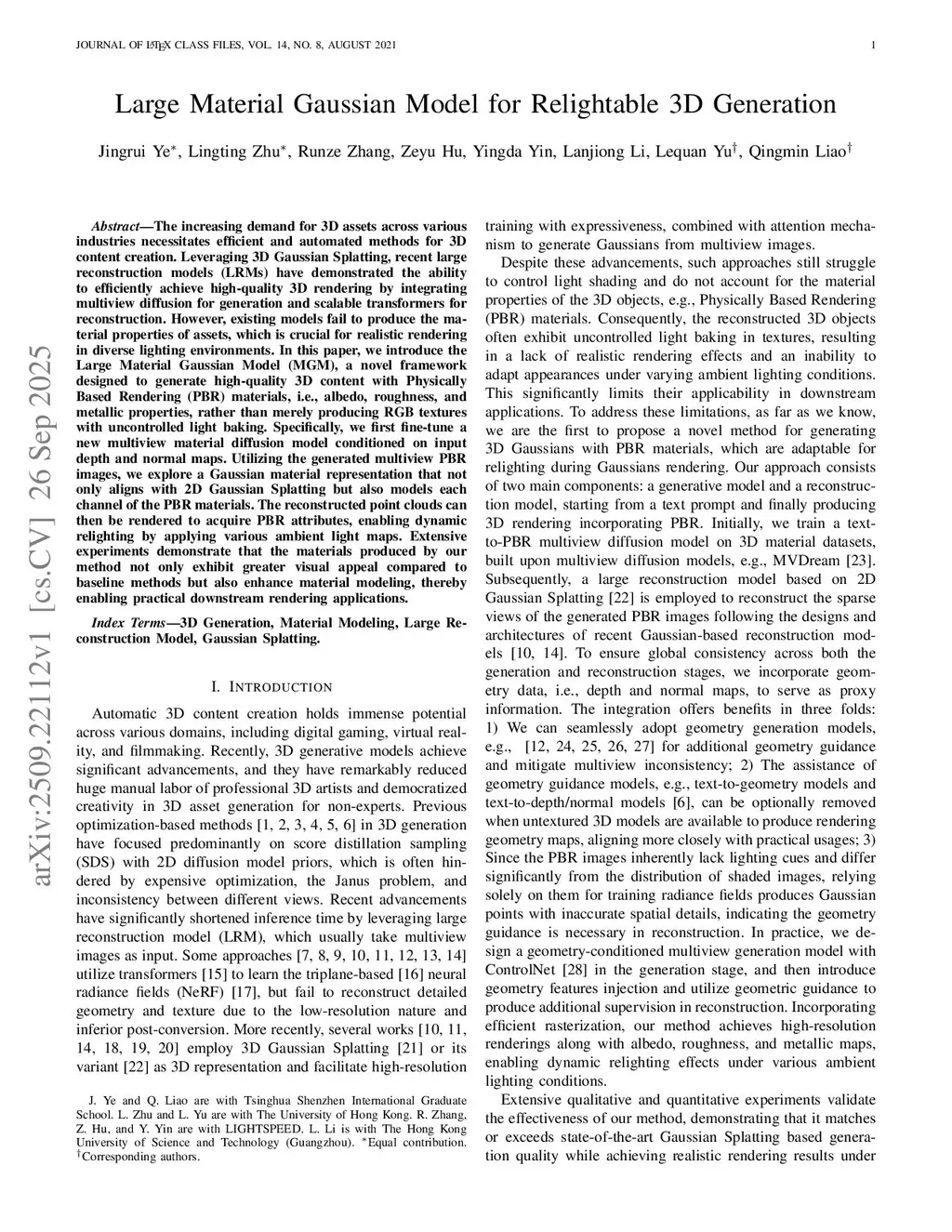 The increasing demand for 3D assets across various industries necessitates efficient and automated methods for 3D content creation. Leveraging 3D Gaussian Splatting, recent large reconstruction models (LRMs) have demonstrated the ability to efficiently achieve high-quality 3D rendering by integrating multiview diffusion for generation and scalable transformers for reconstruction. However, existing models fail to produce the material properties of assets, which is crucial for realistic rendering in diverse lighting environments. In this paper, we introduce the Large Material Gaussian Model (MGM), a novel framework designed to generate high-quality 3D content with Physically Based Rendering (PBR) materials, ie, albedo, roughness, and metallic properties, rather than merely producing RGB textures with uncontrolled light baking. Specifically, we first fine-tune a new multiview material diffusion model conditioned on input depth and normal maps. Utilizing the generated multiview PBR images, we explore a Gaussian material representation that not only aligns with 2D Gaussian Splatting but also models each channel of the PBR materials. The reconstructed point clouds can then be rendered to acquire PBR attributes, enabling dynamic relighting by applying various ambient light maps. Extensive experiments demonstrate that the materials produced by our method not only exhibit greater visual appeal compared to baseline methods but also enhance material modeling, thereby enabling practical downstream rendering applications.