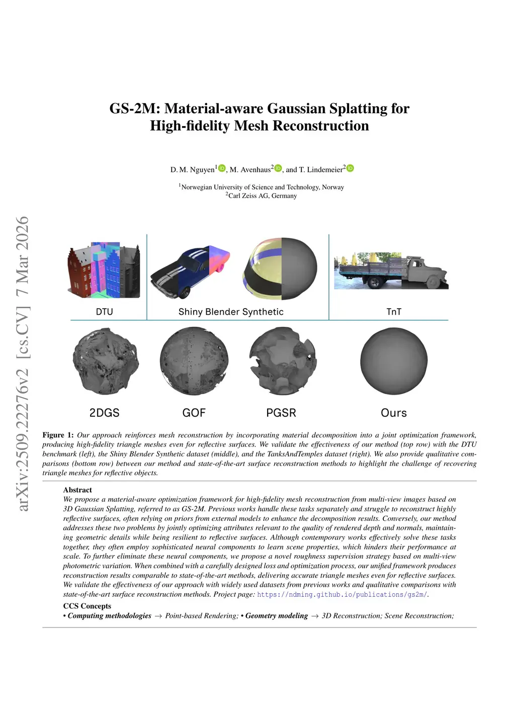 GS-2M: Material-aware Gaussian Splatting for High-fidelity Mesh Reconstruction