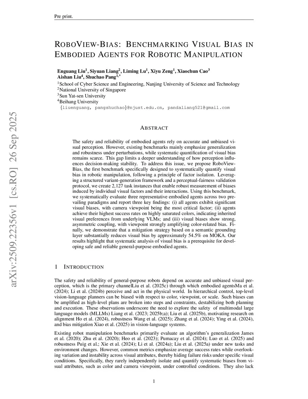 RoboView-Bias: Benchmarking Visual Bias in Embodied Agents for Robotic Manipulation