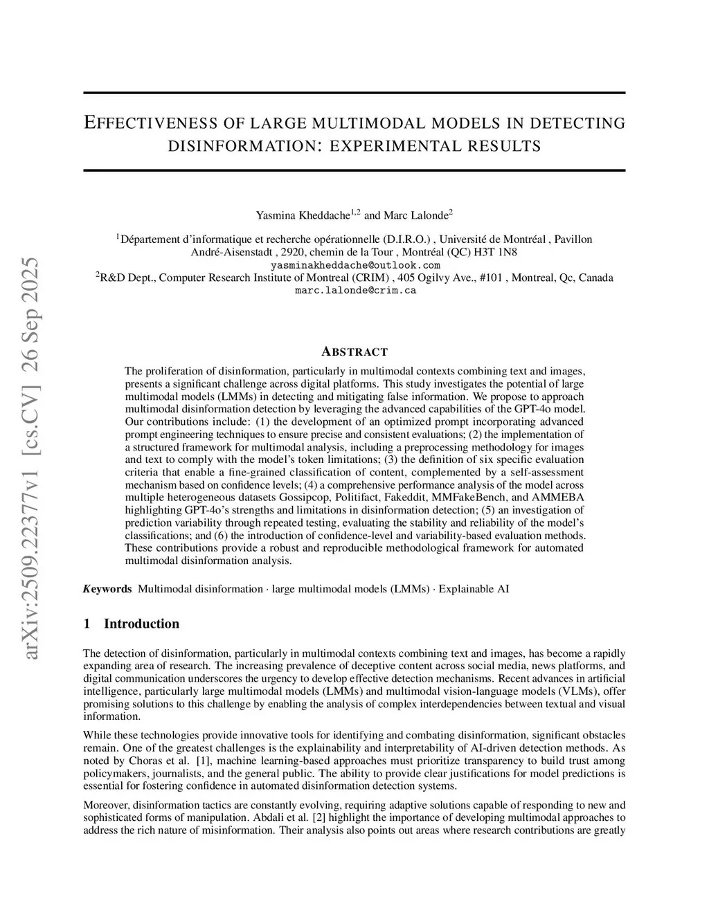 The proliferation of disinformation, particularly in multimodal contexts combining text and images, presents a significant challenge across digital platforms. This study investigates the potential of large multimodal models (LMMs) in detecting and mitigating false information. We propose to approach multimodal disinformation detection by leveraging the advanced capabilities of the GPT-4o model. Our contributions include: (1) the development of an optimized prompt incorporating advanced prompt engineering techniques to ensure precise and consistent evaluations; (2) the implementation of a structured framework for multimodal analysis, including a preprocessing methodology for images and text to comply with the model's token limitations; (3) the definition of six specific evaluation criteria that enable a fine-grained classification of content, complemented by a self-assessment mechanism based on confidence levels; (4) a comprehensive performance analysis of the model across multiple heterogeneous datasets Gossipcop, Politifact, Fakeddit, MMFakeBench, and AMMEBA highlighting GPT-4o's strengths and limitations in disinformation detection; (5) an investigation of prediction variability through repeated testing, evaluating the stability and reliability of the model's classifications; and (6) the introduction of confidence-level and variability-based evaluation methods. These contributions provide a robust and reproducible methodological framework for automated multimodal disinformation analysis.