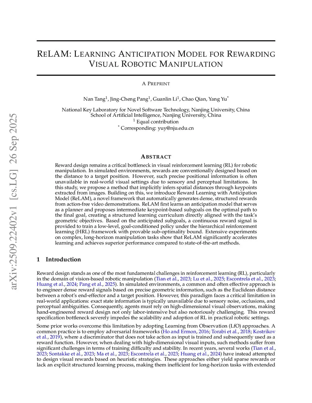ReLAM: Learning Anticipation Model for Rewarding Visual Robotic Manipulation