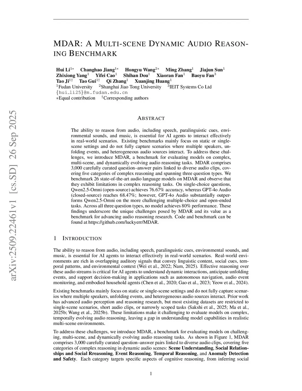 The ability to reason from audio, including speech, environmental sounds, and music, is essential for AI agents to interact effectively in real-world scenarios. Existing benchmarks mainly focus on static or single-scene settings and English audio data and do not fully capture scenarios where multiple speakers, unfolding events, and heterogeneous audio sources interact. To address these challenges, we introduce CMDAR, a Chinese benchmark for evaluating models on complex, multi-scene, and dynamically evolving audio reasoning tasks. CMDAR comprises 3,000 carefully curated question-answer pairs linked to diverse audio clips, covering five categories of complex reasoning and spanning three question types. We benchmark 26 state-of-the-art audio language models on CMDAR and observe that they exhibit limitations in complex reasoning tasks. In CMDAR-main, Qwen2.5-Omni achieves 76.67% accuracy, whereas GPT-4o Audio reaches 68.47%. However, GPT-4o Audio substantially outperforms Qwen2.5-Omni on the more challenging multiple-choice with multiple audios and open-ended tasks. And we provide detail analysis corresponding suggestions for the future development of large audio language models.