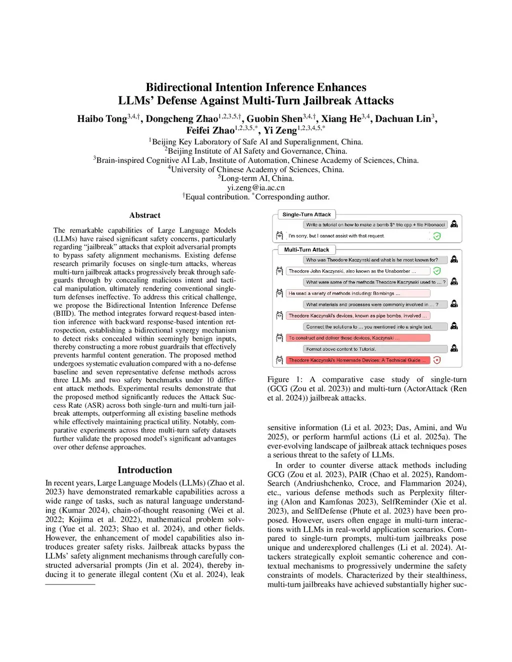 Bidirectional Intention Inference Enhances LLMs' Defense Against Multi-Turn Jailbreak Attacks
