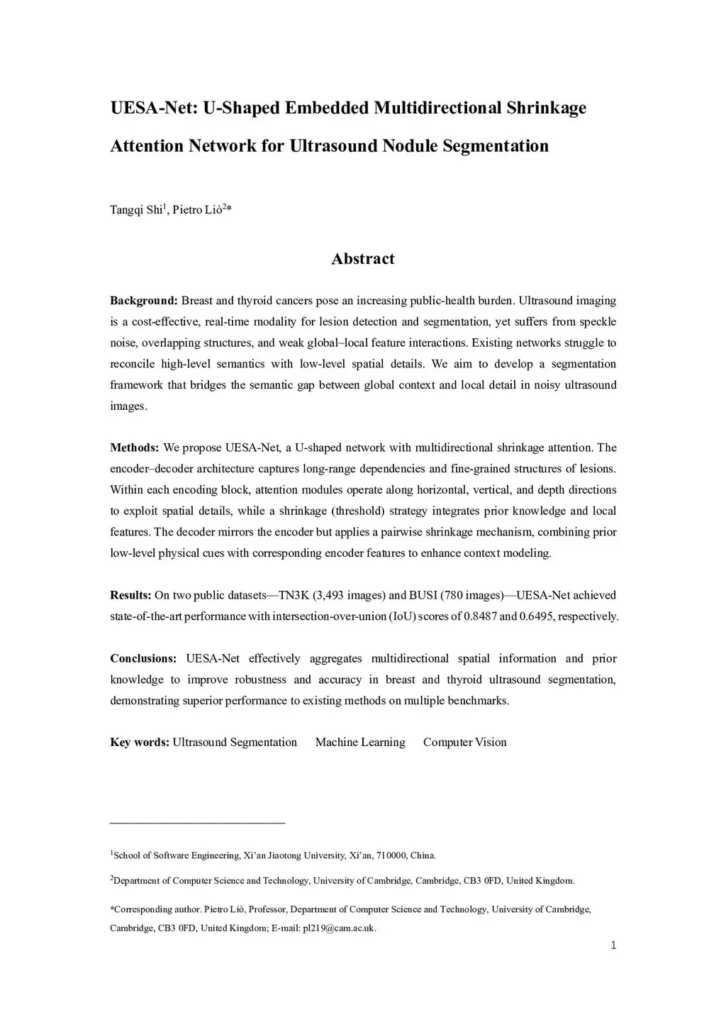 UESA-Net: U-Shaped Embedded Multidirectional Shrinkage Attention Network for Ultrasound Nodule Segmentation