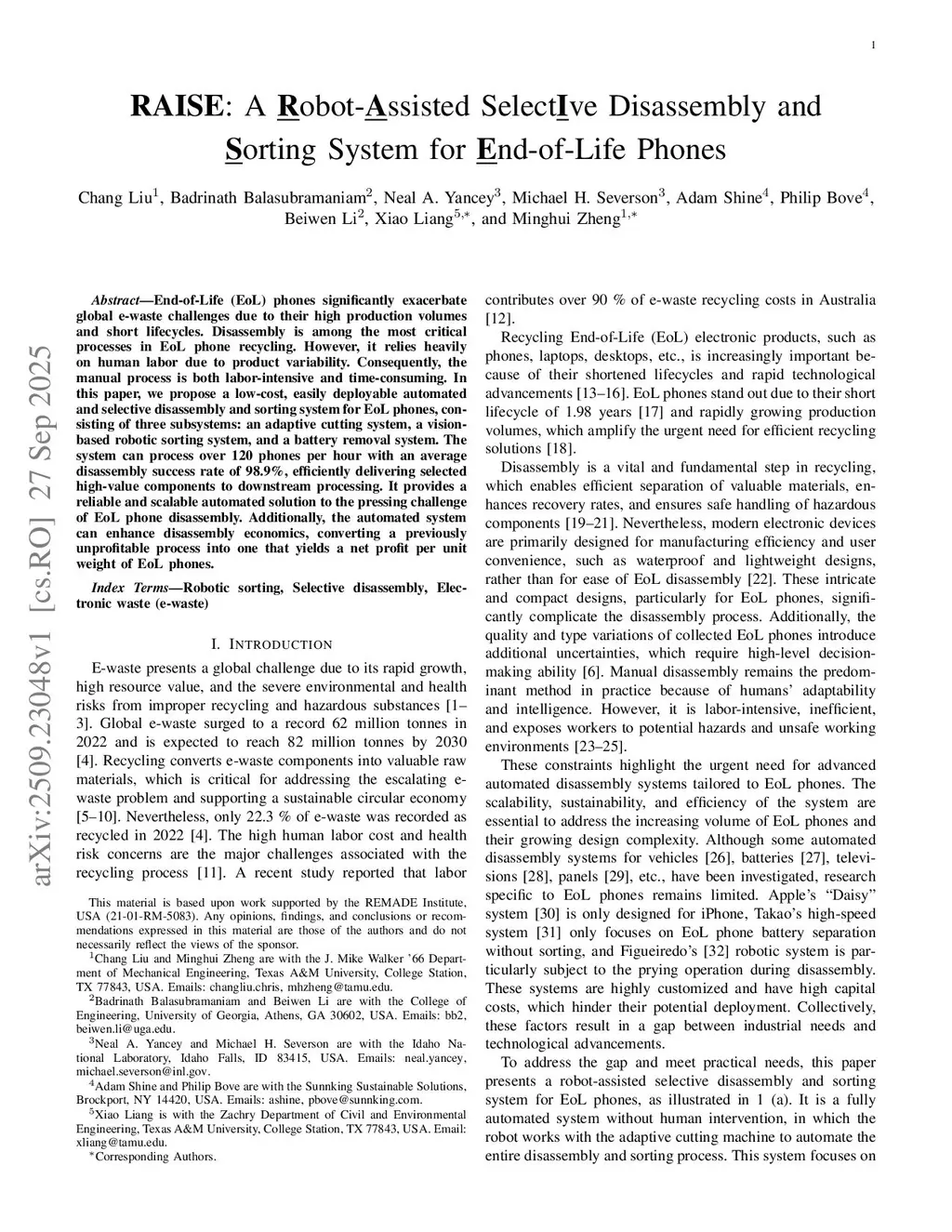RAISE: A Robot-Assisted Selective Disassembly and Sorting System for End-of-Life Phones