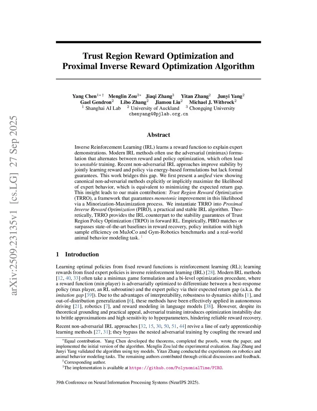 Trust Region Reward Optimization and Proximal Inverse Reward Optimization Algorithm