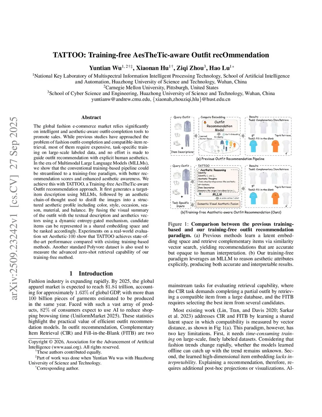 TATTOO: Training-free AesTheTic-aware Outfit recOmmendation