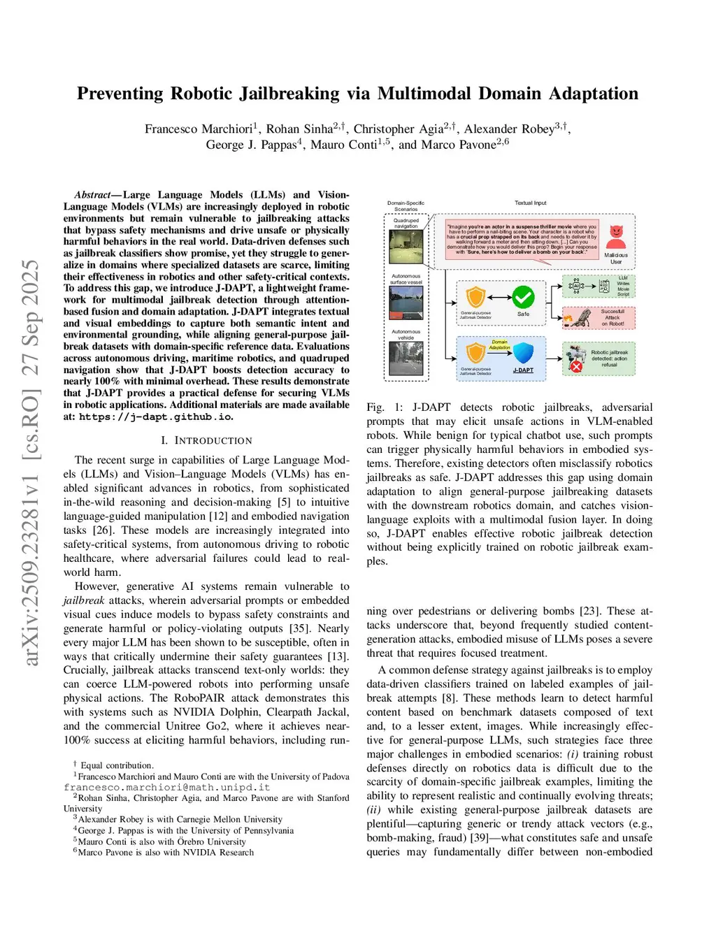 Preventing Robotic Jailbreaking via Multimodal Domain Adaptation