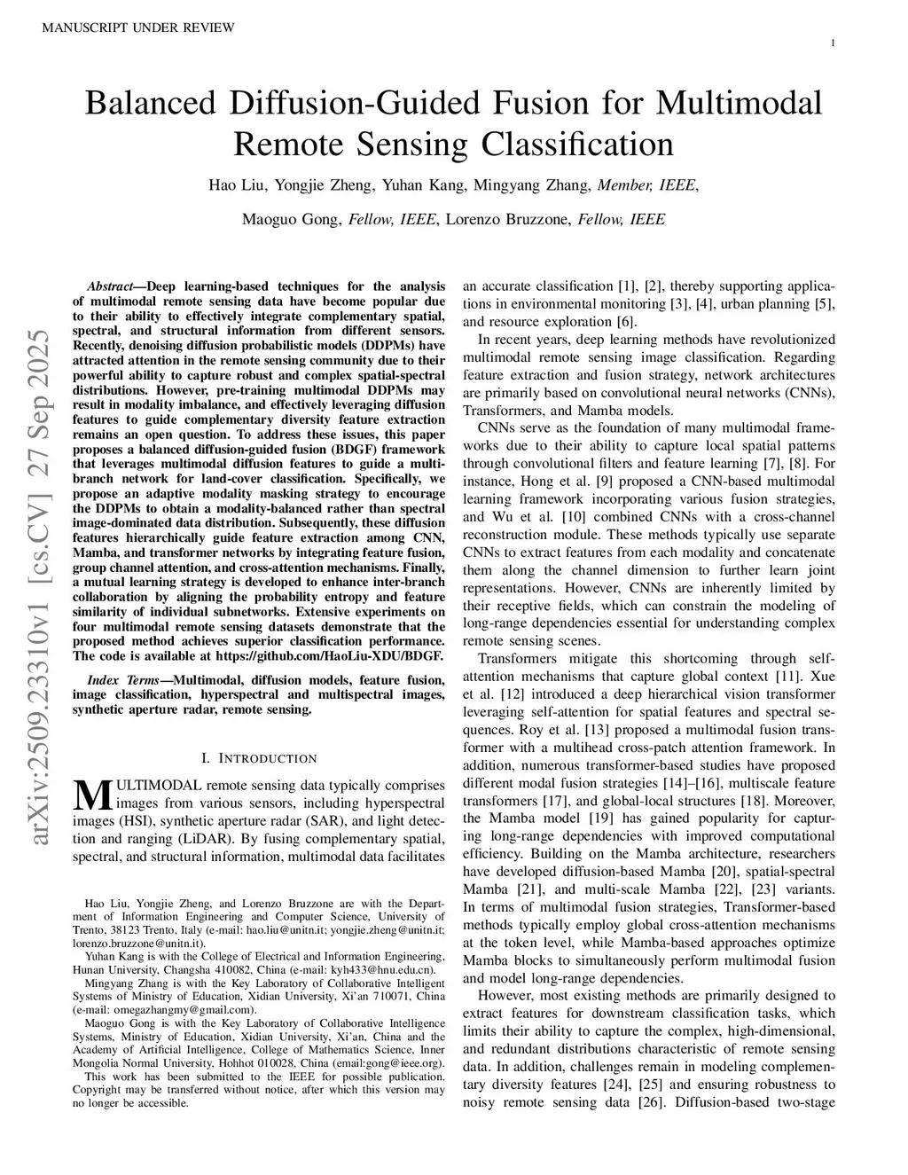 Balanced Diffusion-Guided Fusion for Multimodal Remote Sensing Classification