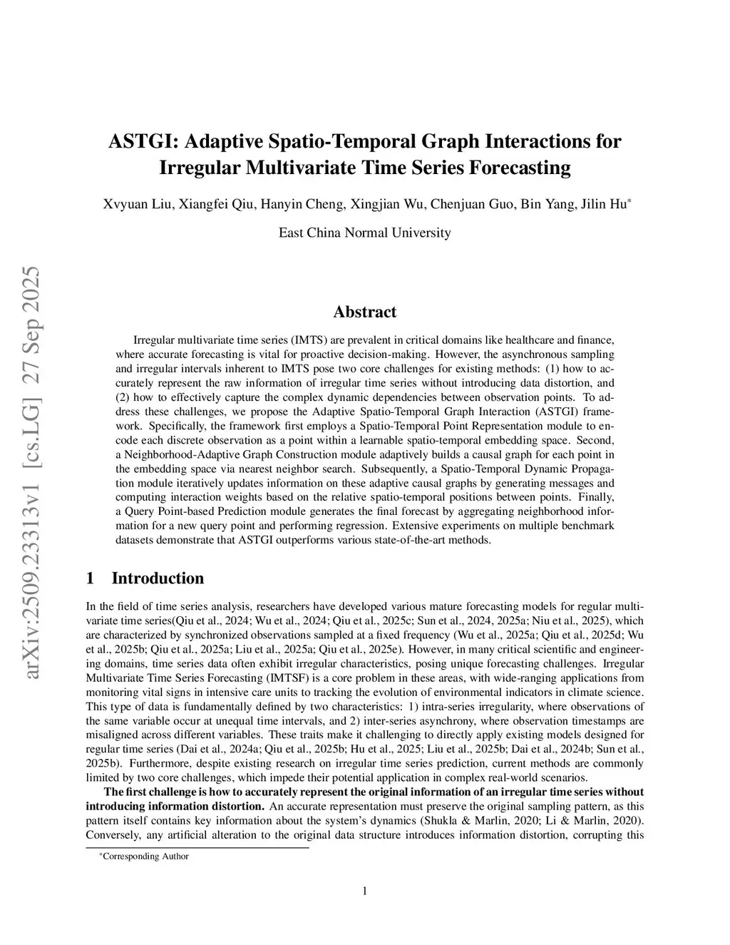 ASTGI: Adaptive Spatio-Temporal Graph Interactions for Irregular Multivariate Time Series Forecasting