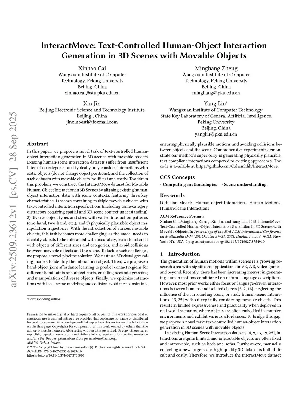 InteractMove: Text-Controlled Human-Object Interaction Generation in 3D Scenes with Movable Objects