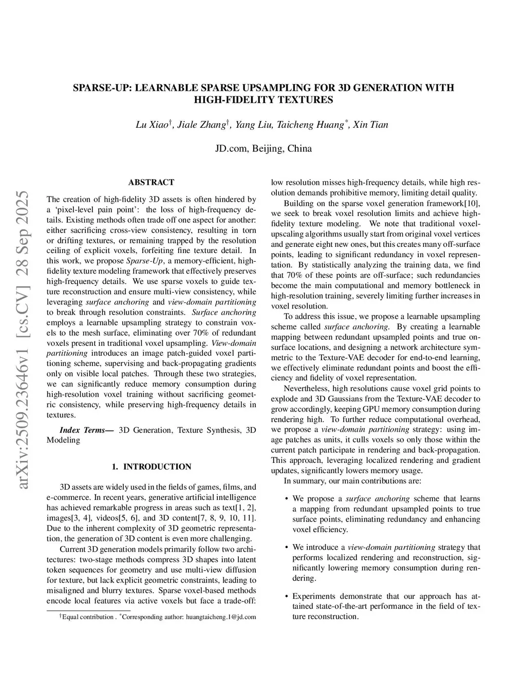 Sparse-Up: Learnable Sparse Upsampling for 3D Generation with High-Fidelity Textures