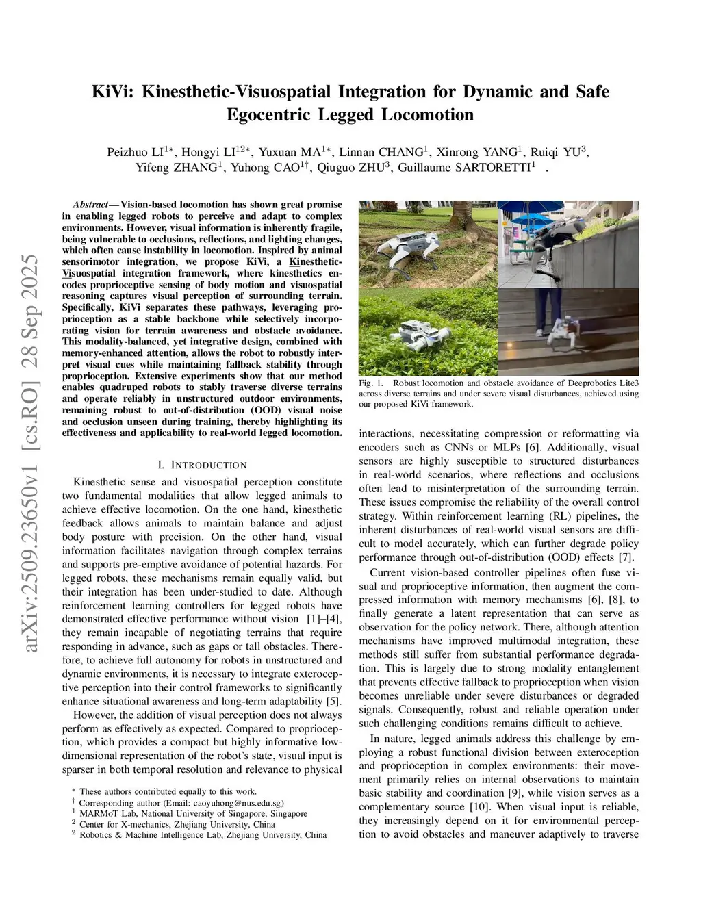 KiVi: Kinesthetic-Visuospatial Integration for Dynamic and Safe Egocentric Legged Locomotion
