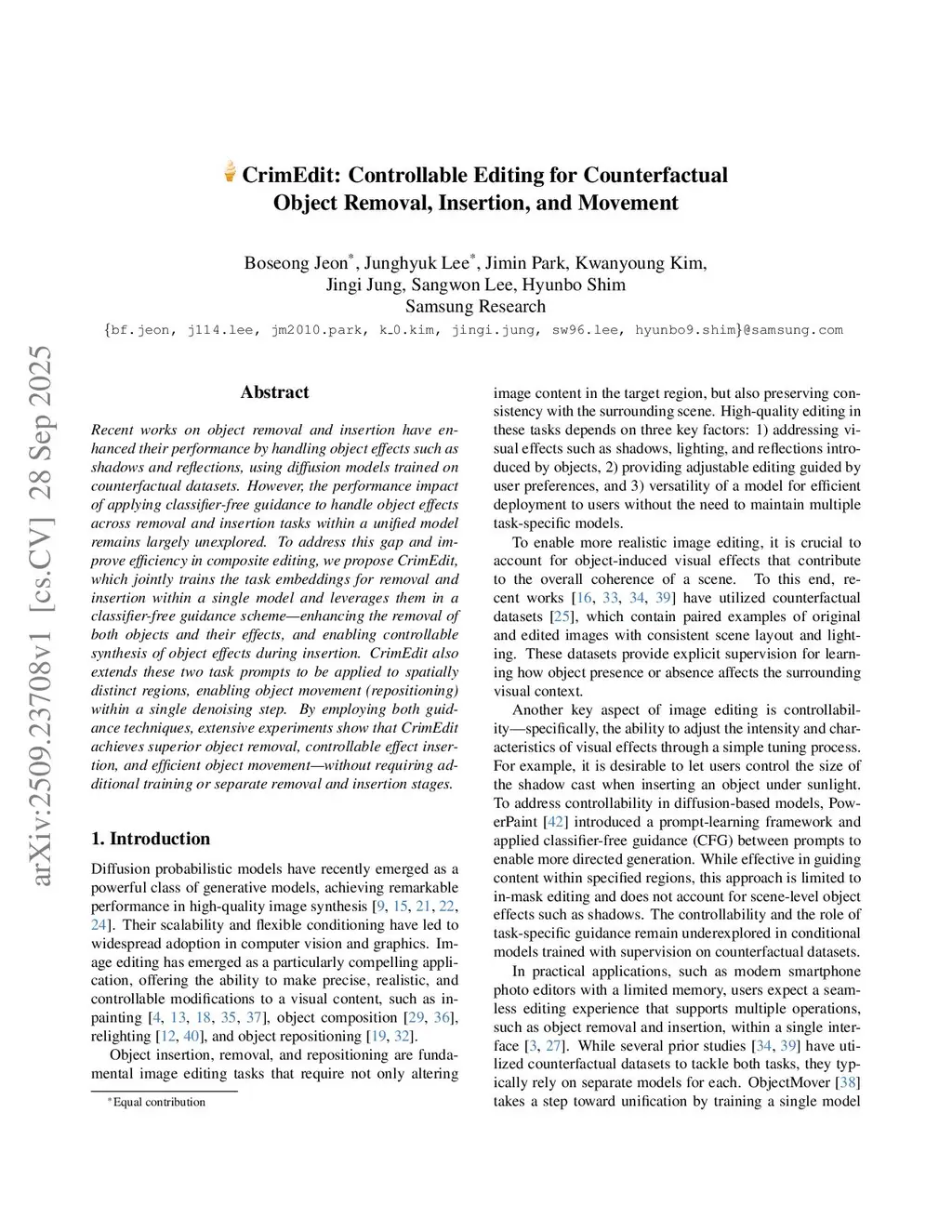 CrimEdit: Controllable Editing for Counterfactual Object Removal, Insertion, and Movement
