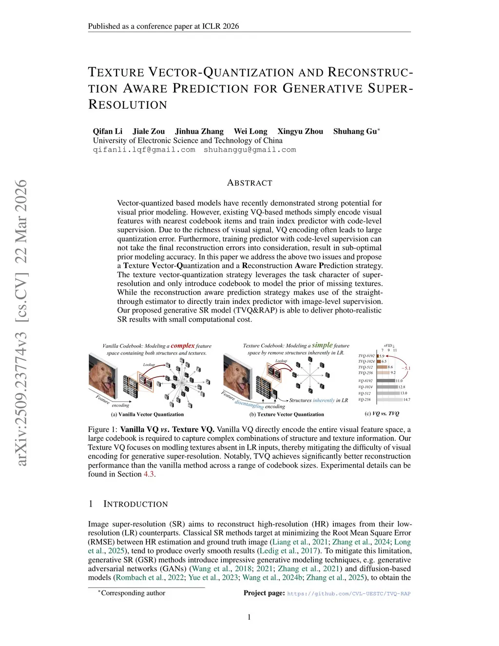 Texture Vector-Quantization and Reconstruction Aware Prediction for Generative Super-Resolution