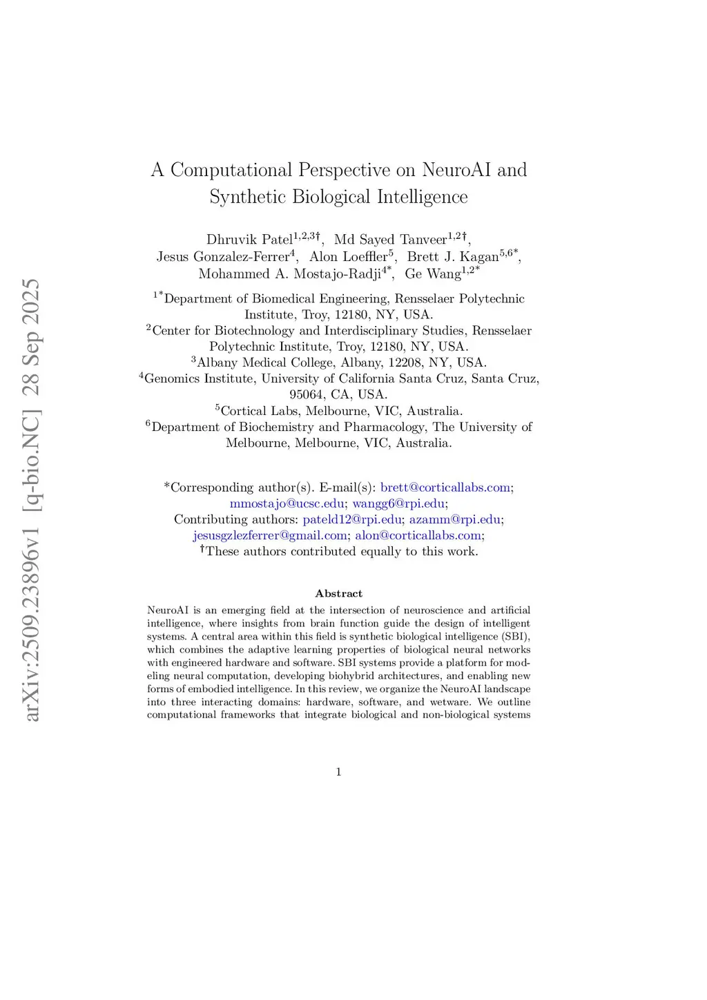 A Computational Perspective on NeuroAI and Synthetic Biological Intelligence