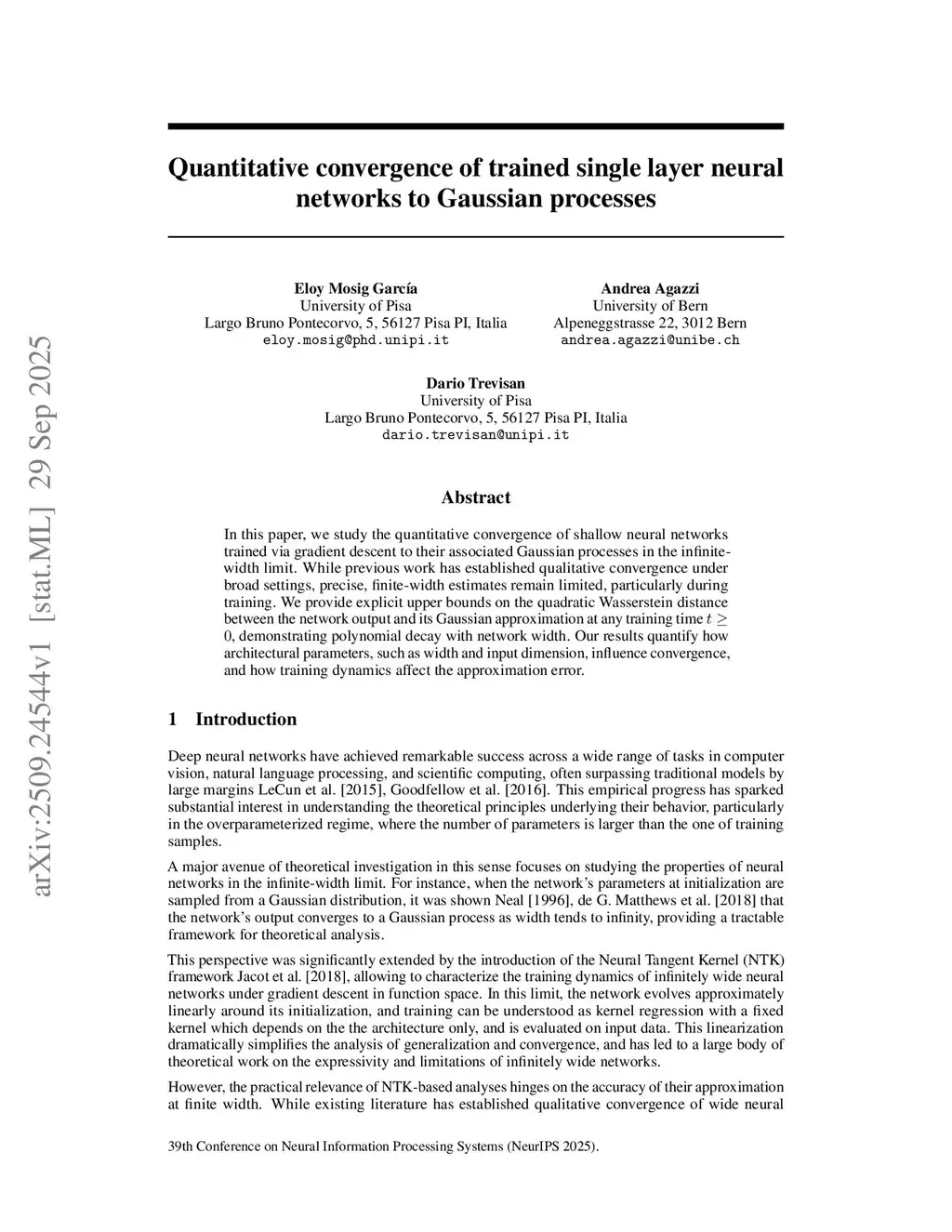Quantitative convergence of trained single layer neural networks to Gaussian processes