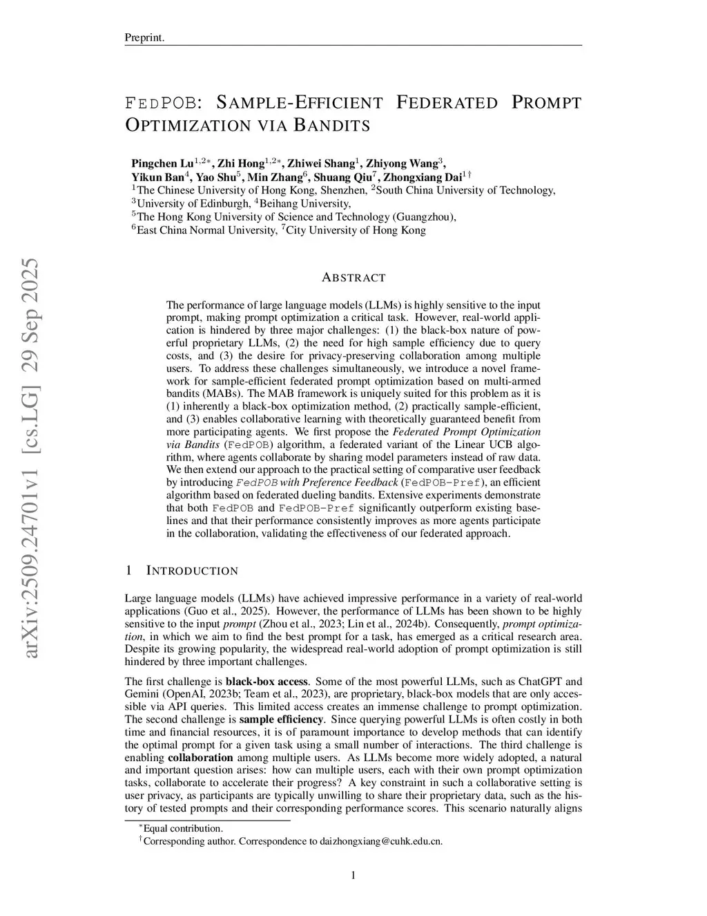 FedPOB: Sample-Efficient Federated Prompt Optimization via Bandits