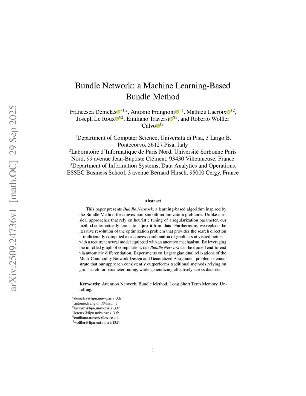 This paper presents Bundle Network, a learning-based algorithm inspired by the Bundle Method for convex non-smooth minimization problems. Unlike classical approaches that rely on heuristic tuning of a regularization parameter, our method automatically learns to adjust it from data. Furthermore, we replace the iterative resolution of the optimization problem that provides the search direction-traditionally computed as a convex combination of gradients at visited points-with a recurrent neural model equipped with an attention mechanism. By leveraging the unrolled graph of computation, our Bundle Network can be trained end-to-end via automatic differentiation. Experiments on Lagrangian dual relaxations of the Multi-Commodity Network Design and Generalized Assignment problems demonstrate that our approach consistently outperforms traditional methods relying on grid search for parameter tuning, while generalizing effectively across datasets.
