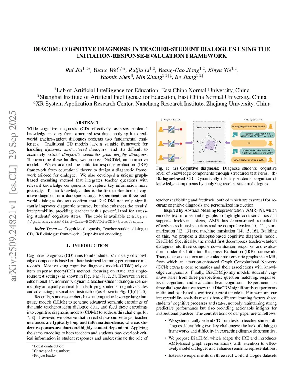 DiaCDM: Cognitive Diagnosis in Teacher-Student Dialogues using the Initiation-Response-Evaluation Framework