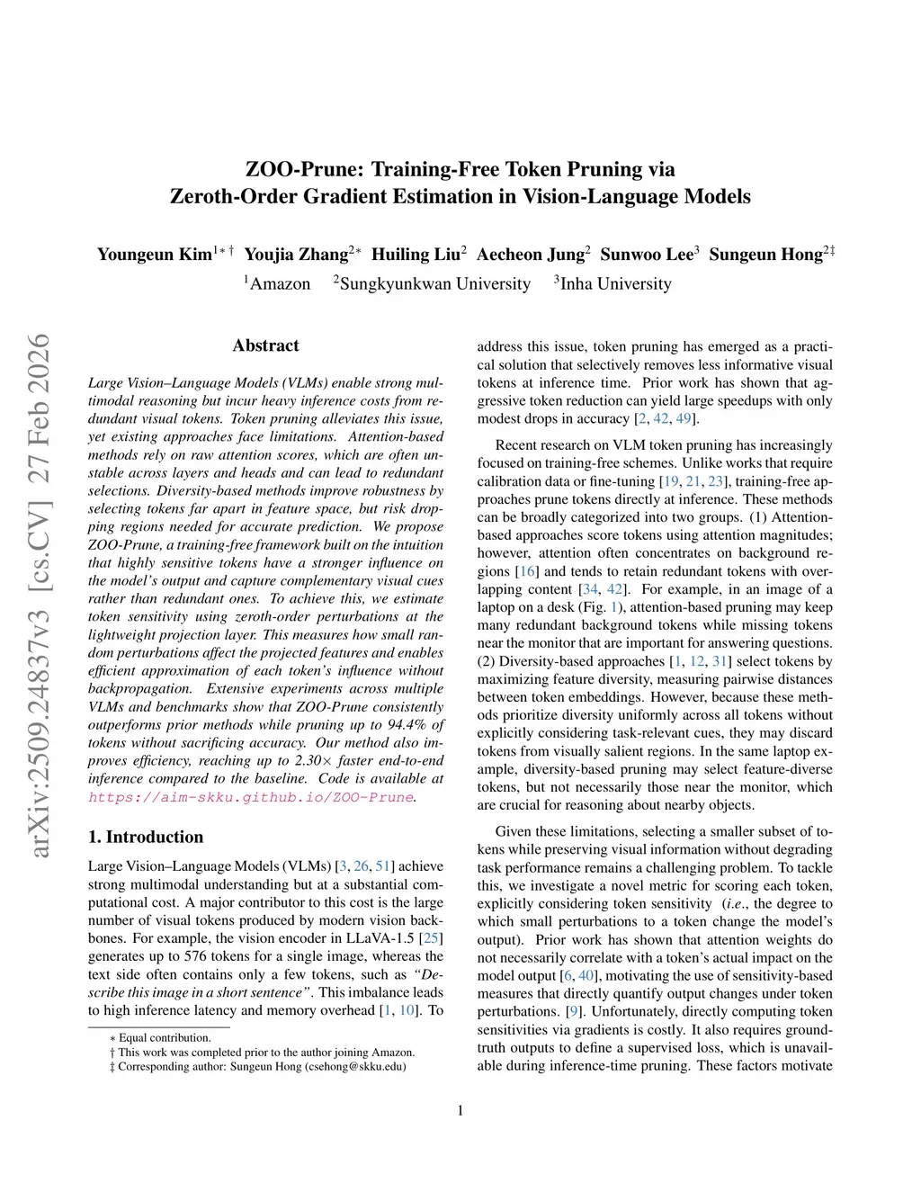ZOO-Prune: Training-Free Token Pruning via Zeroth-Order Gradient Estimation in Vision-Language Models