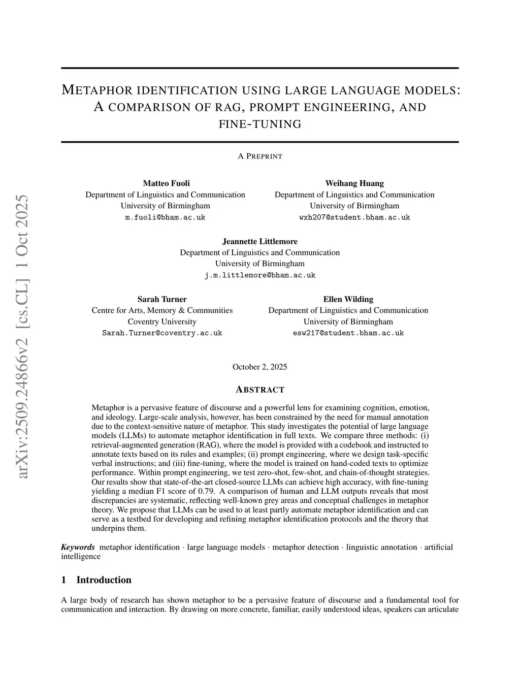 Metaphor identification using large language models: A comparison of RAG, prompt engineering, and fine-tuning