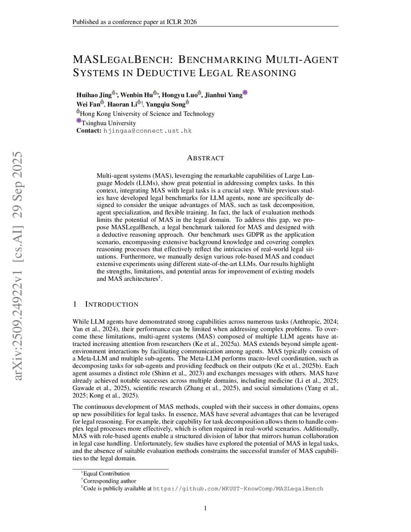 MASLegalBench: Benchmarking Multi-Agent Systems in Deductive Legal Reasoning