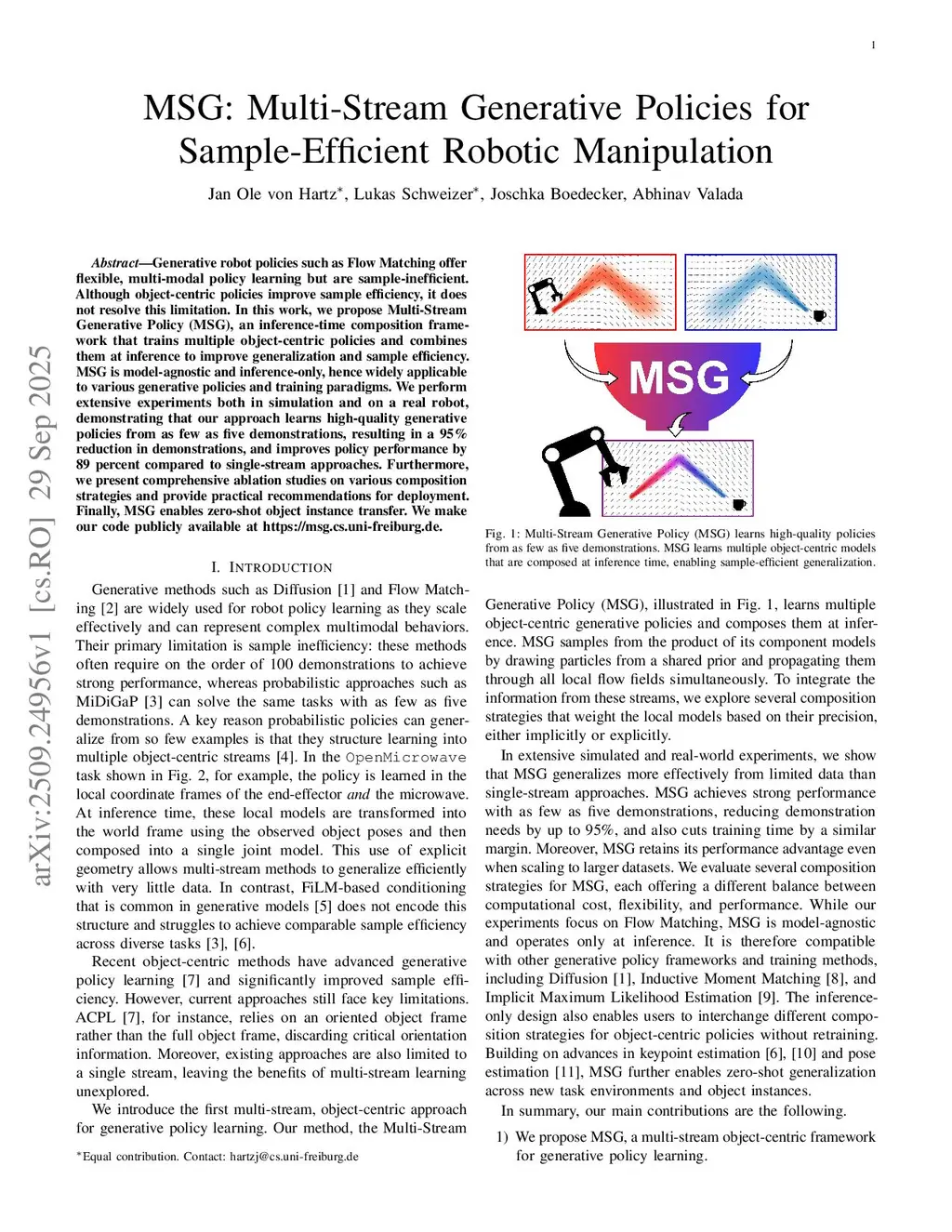 MSG: Multi-Stream Generative Policies for Sample-Efficient Robotic Manipulation