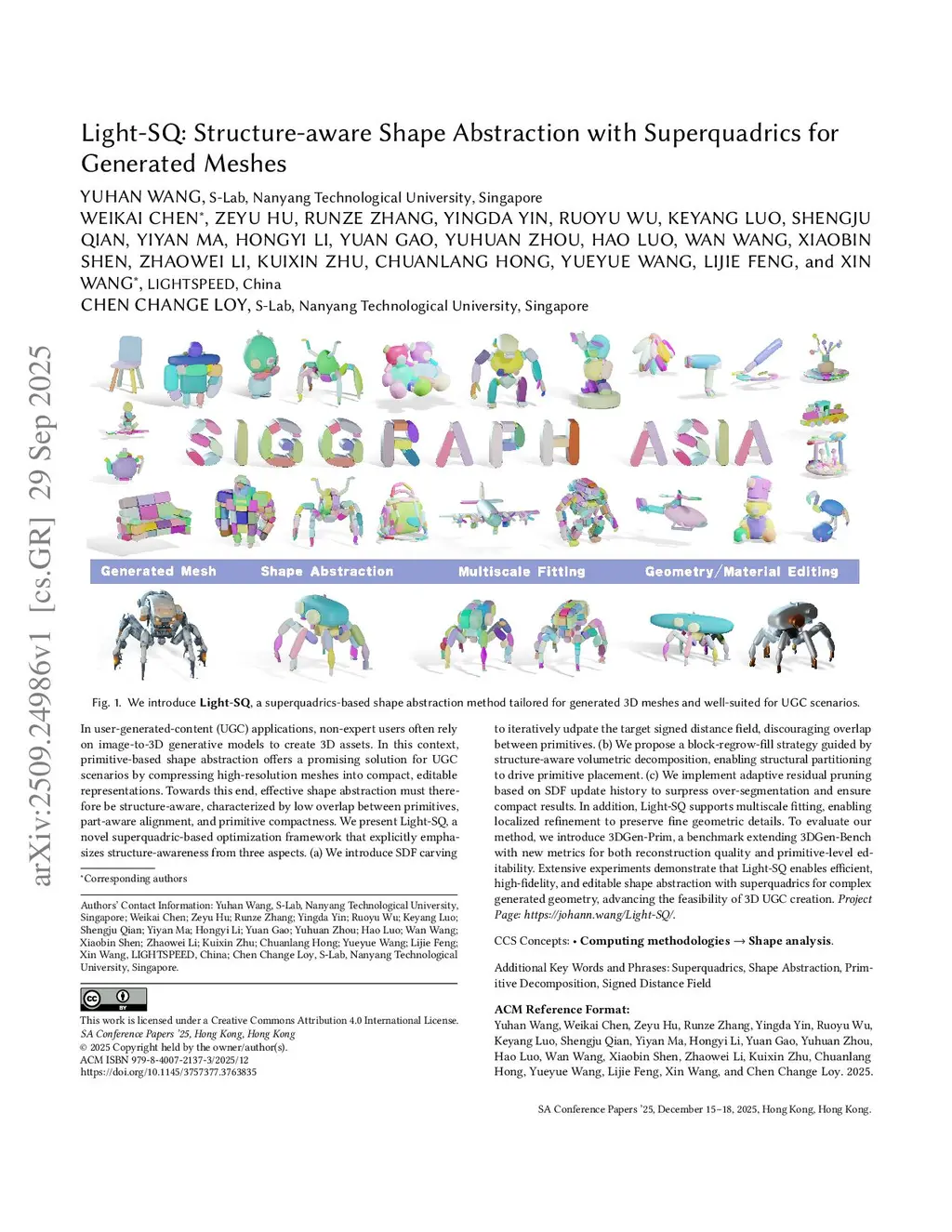 Light-SQ: Structure-aware Shape Abstraction with Superquadrics for Generated Meshes