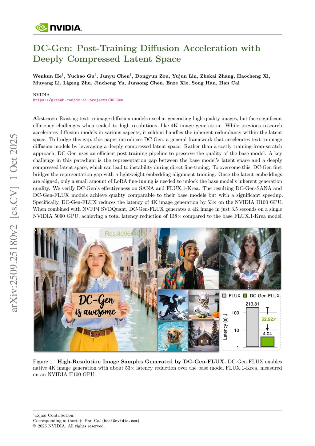 DC-Gen: Post-Training Diffusion Acceleration with Deeply Compressed Latent Space
